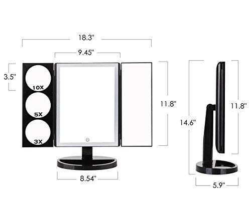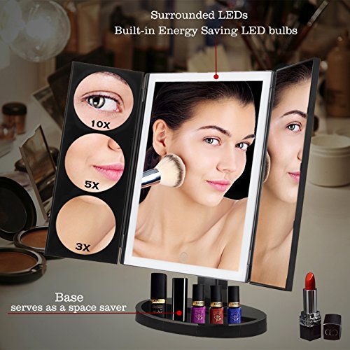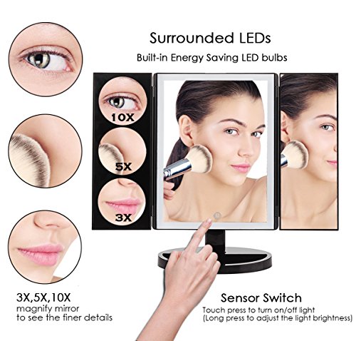 ★4 Magnify Mirrors: Our magnified makeup mirror includes 4 Panels (1X, 3X, 5X, 10X magnify mirrors) and a wide-angle viewing allow you to see clearly finer facial details and make a more delicate makeup. Perfect for professional dresser and people who love making up.