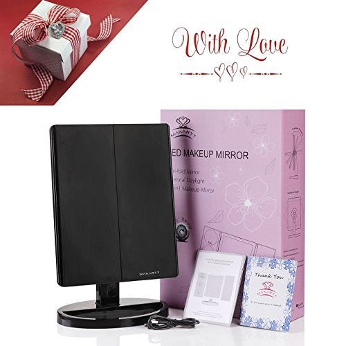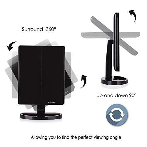 MAKARTT Lighted Makeup Mirror 2017 Newest 5 in 1 Vanity Mirror with Touch Sensor, 1x/3x/5x/10x Magnification and USB Charging, 360° Adjustable Stand for Countertop Cosmetic Makeup (Black)