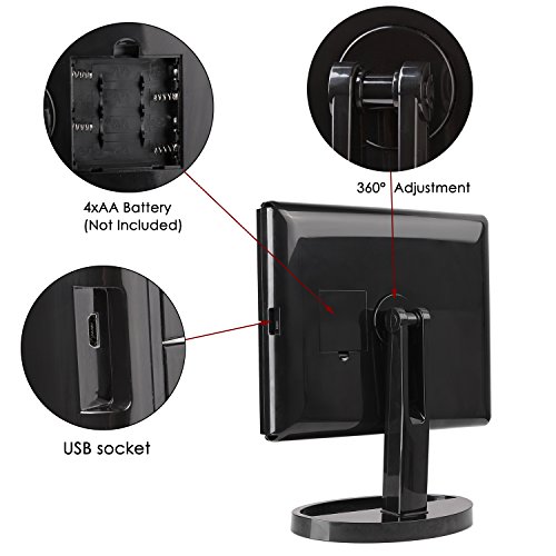 ★Double Power: The led makeup mirror can be changed by USB charging and 4pcs AA battery (battery not included, USB cable included). Battery power won’t be consumed if the USB charging operated. Long press to adjust the lightness you want.