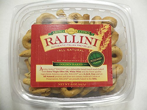 RALLINI Authentic Italian Pretzels, Rosemary, 8 Ounce (Pack of 6)
