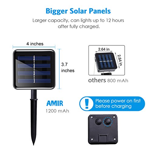 Solar Powered & Excellent Performance - The 200 led AMIR solar powered string light (low voltage, no transformer included) is no need battery replacement and charge even on cloudy days and turn on automatically at dusk with bright light color, Solar Light will have best performance.