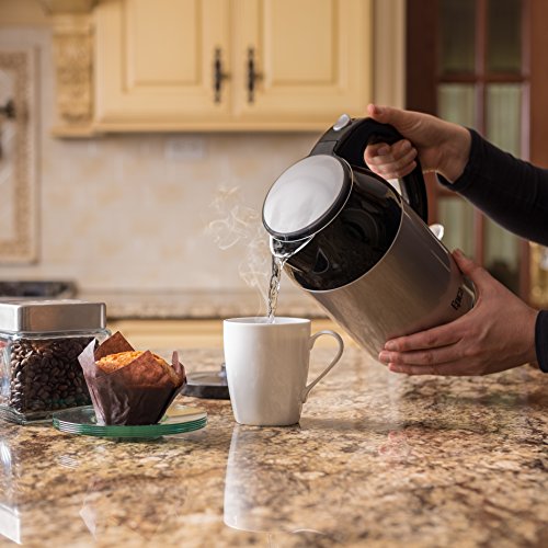 BOIL 1.8 QUARTS (1.7 LITERS) IN MINUTES: The British-made 1500 watt power delivery system and double-wall insulated construction means that you can boil a full kettle of water in just a few minutes. It will leave your old kettle in the dust!