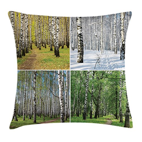 (Ambesonne)/Bedding Bath/Bedding/DIRECT FROM USA/Landscape Throw Pillow Cushion Cover by Ambesonne, Pathway in Woodland Birch Tree Jungle in the...