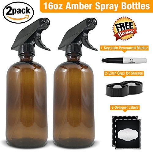 ☆ PREMIUM QUALITY - Super set of 2 durable, refillable, 16oz amber glass spray bottles designed with specialized amber glass for maximum sun penetration for creating solar water.