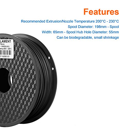 ICOCO 3D Printer Filament, PLA Filament 1.75mm Dimensional Accuracy +/- 0.02 mm Low Odor 3D Printing Filament, 1kg Spool(2.2LBS), PLA-1000g for Most 3D Printer & 3D Pen (black)