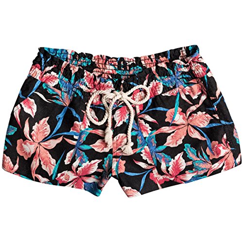 Woven pull on beach short with a smocked waistband with a rope draw cord.