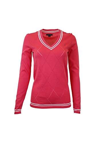 Long sleeve v-neck sweater with striped v-neck. 2016 model from Tommy Hilfiger.