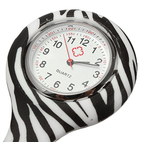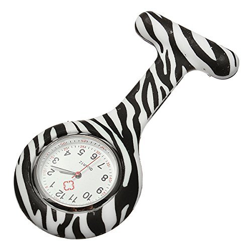 -. Title : TOOGOO(R) Fashion Style Nurse Silicone Round Dial Quartz Fob Quartz Pocket Watch Xmas gift-Black white zebra