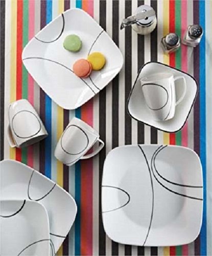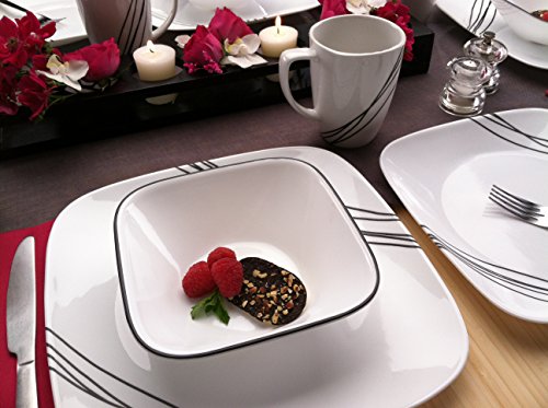Corelle Square Simple Lines Square 16-Piece Dinnerware Set, Service for 4, Black/White