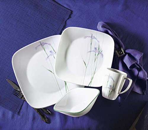 Corelle Square 16-Piece Dinnerware Set, Shadow Iris, Service for 4