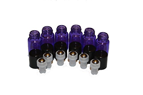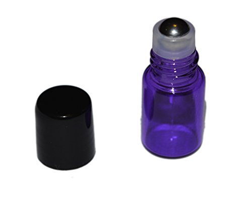 100pcs 2mL (5/8 dram) Purple Glass Stainless Steel Roller Bottle 2cc Purple Sample Vial Small Essential Oil Bottle Travel Must + one 7 Chakra...