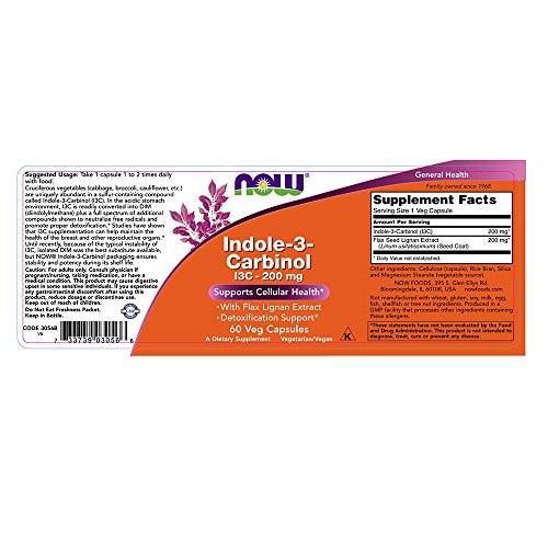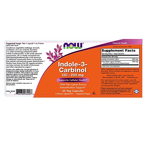 Cruciferous vegetables (cabbage, broccoli, cauliflower, etc.) are uniquely abundant in a sulfur-containing compound called Indole-3-Carbinol (I3C). In the acidic stomach environment, I3C is readily converted into DIM (diindolemethane) plus a full spectrum of additional compounds shown to neutralize free radicals and promote proper detoxification.* Studies have shown that I3C supplementation can help maintain the health of the breast and other reproductive organs.* Until recently, because of the typical instability of I3C, isolated DIM was the best substitute available, but NOW Indole-3-Carbinol packaging ensures stability and potency during its shelf life.Feature