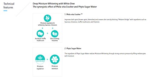 -. Feature : Moisture Whitening Tone-up Cream in moisturizing texture instantly brightens yellowish, dull skin tone upon application / Certified whitening function of Saururus chinensis Extract / Improved adherence with the built-in "Tone-up puff"! / Natural instant tone-up with non-pigmented, white lsion type / Hyper allergy tests completed