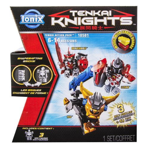-. Feature : Revolutionize construction play with the shapeshifting bricks of Tenkai Knights powered by the IONIX construction system! / Compatible with major construction brands, these bricks are like nothing you've seen before. Bricks that come alive,with unexpected surP.R.Ises / Features 2 humanoid and 1, 4-legged shapeshifting bricks! Bravenwolf and Leinad must face-off against the evil 4-legged Hos Quadrax Trooper! / Unleash each character's Tenkai power by customizing their armor with additional pieces / 3 Shapeshifting Mini-Figure Bricks, 49 Additional Pieces, Instruction Guide. For boys age 6+