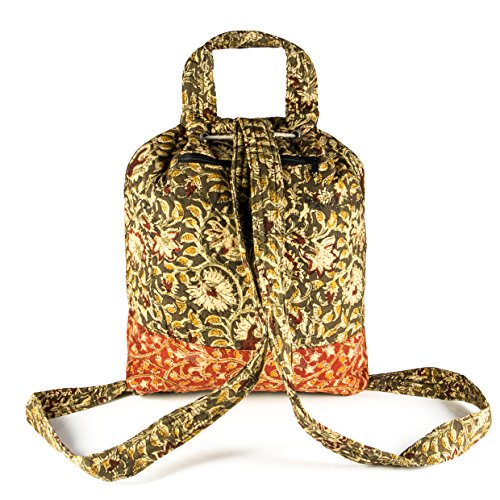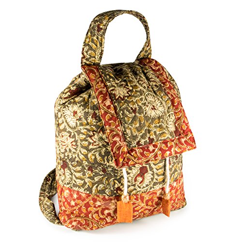 -. Title : Handmade Olivgrün und Rustikale orange Kalamkari Stoff Rucksack