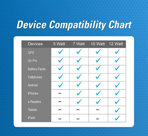 BLKBOX Solar Chargers Can Power Phones, Tablets, GPS or any USB Devices. (Not the best for iPhones, try the 7W or 12W for that)