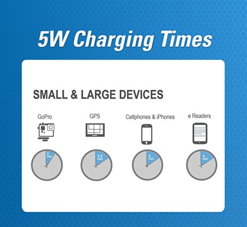10W Panel - 12 oz. Max Power- faster charge for phone, tablet, eReaders and other USB devices. Fully charge an iPhone in about 2 hours. Good for tablets and eReaders and iPads