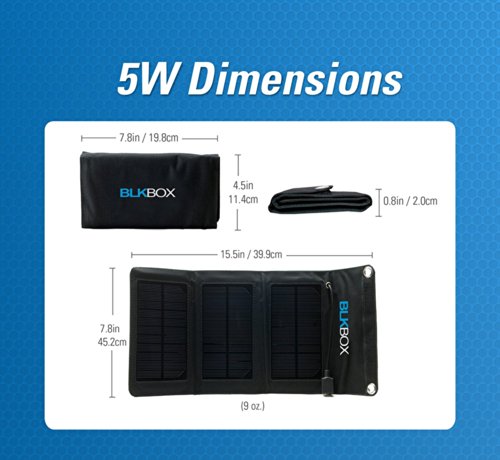 BLKBOX Solar Chargers are perfect accessory to charge any cell phone, tablet, GPS or other USB device. Using BLKBOX solar chargers are a great way to keep your power on all day long. No more running out of power on a hike or at the camp site. BLKBOX makes a great addition to any emergency kit, when the power is out, you can charge your phone using the sun.BLKBOX aims to bring the latest technology products at the lowest possible prices. Satisfaction is Guaranteed.