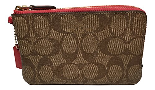 -. Title : Signature PVC Double Corner Zip Wristlet F66506 Khaki Bright Pink