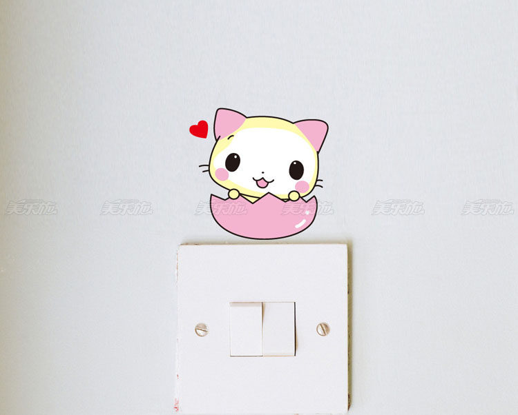 可移除墙贴纸/小猫开关贴粉红/墙纸贴墙贴画贴花