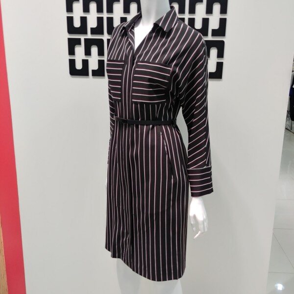 깔끔한 실루엣에 셔츠형 느낌의 원피스로 여성스럽고깔끔한 디자인의 스트라이프 원피스 입니다 스트라이프패턴으로 날씬해 보이고 옵션 벨트로 허리 라인을 강조하여 단정하게 입기 좋습니다 ★37 인치기장입니다★