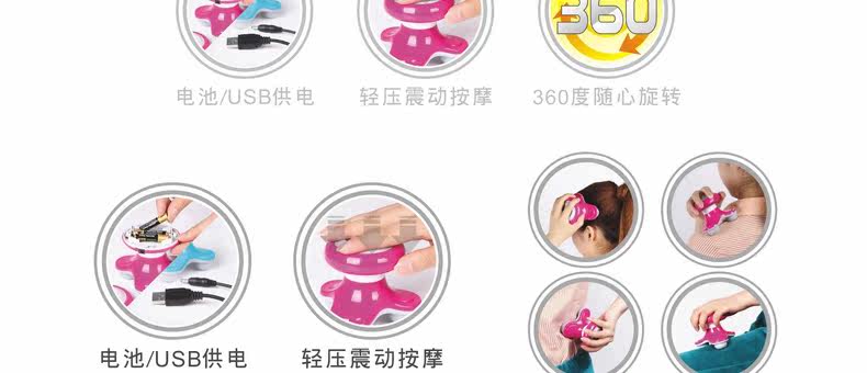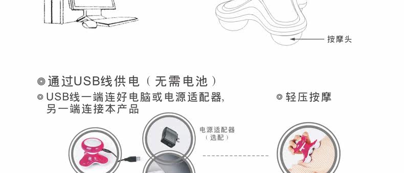 商品包装: 按摩器主机、USB线、opp袋、说明书、礼品彩盒 按摩方式: 震动