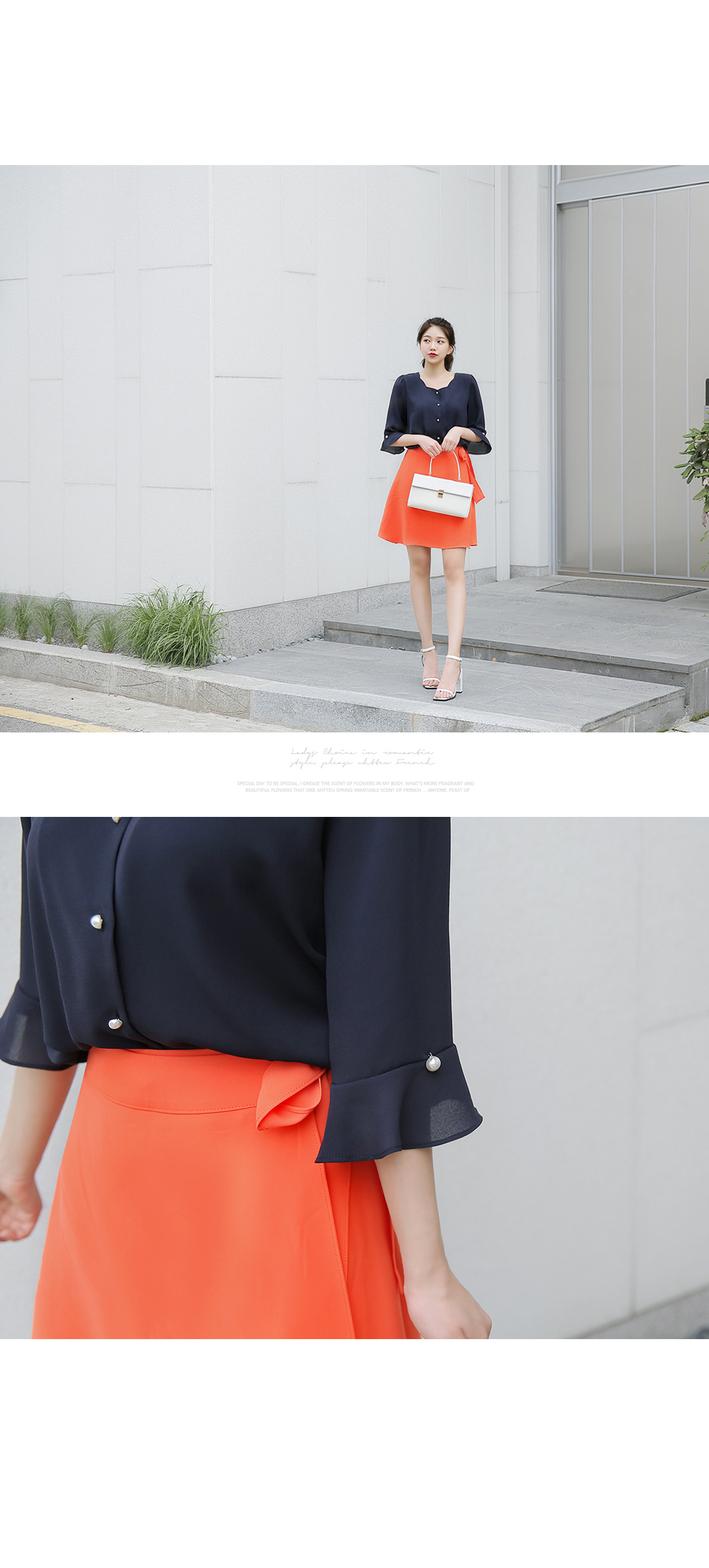 모델은 오렌지 색상을 착용하였답니다.
