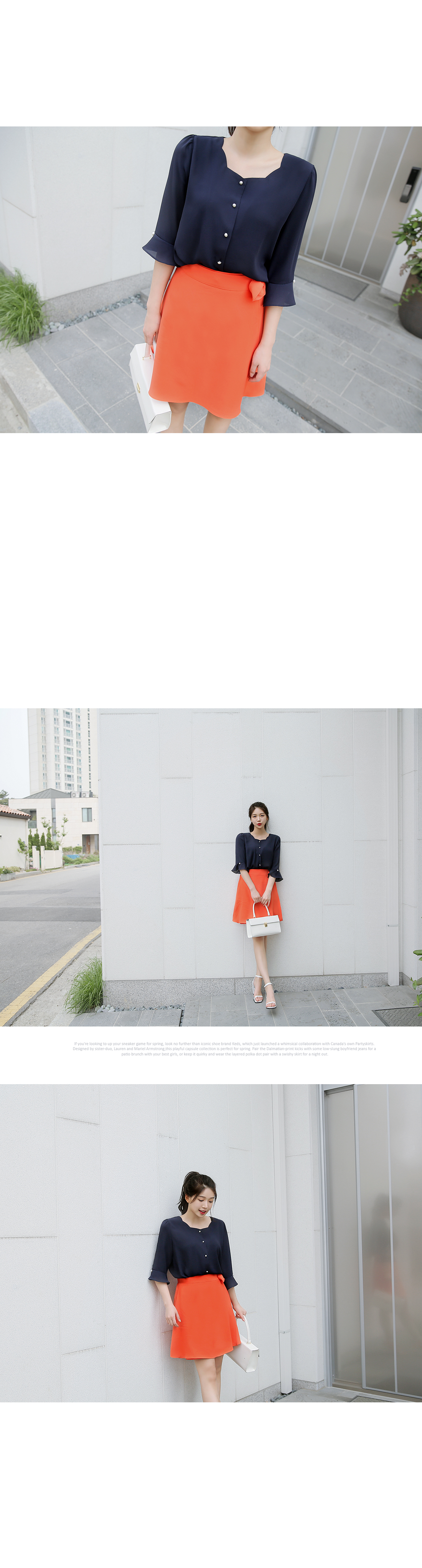 요 아이템 하나로 여성스럽게 연출하기 좋은 스커트에요.