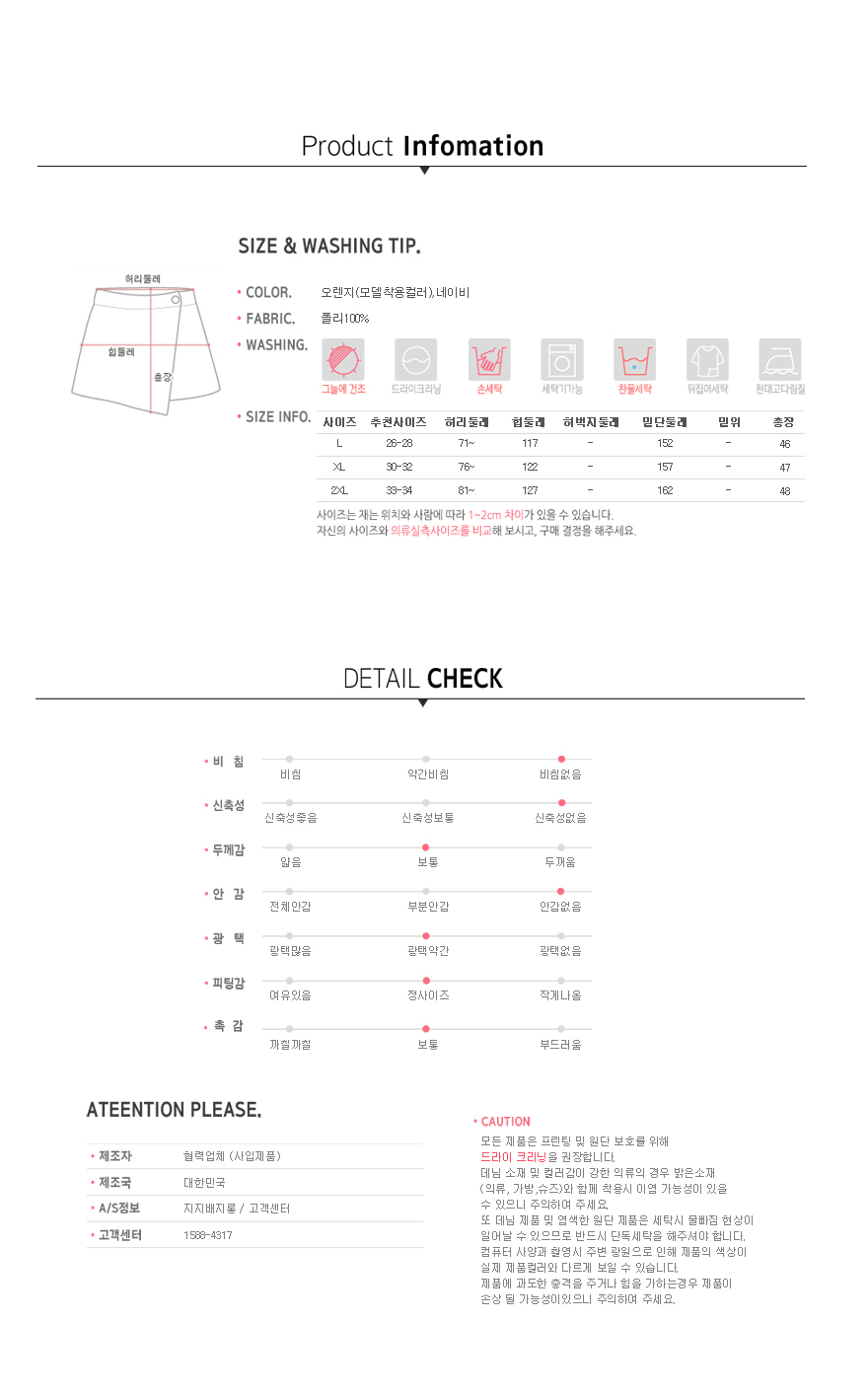 33에서 34까지 분들께는 2XL를 추천해 드려요.자세한 사이즈는 상세 사이즈 표를 참고해 주세요^^