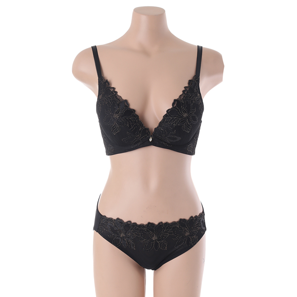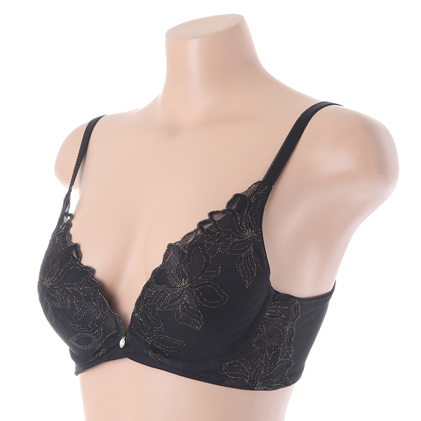 중심이 낮은 딥브이 브라로 전중심의 압박이 적은편이며, L자형 와이어가 가슴을 가운데로 한번 더 모아줍니다.