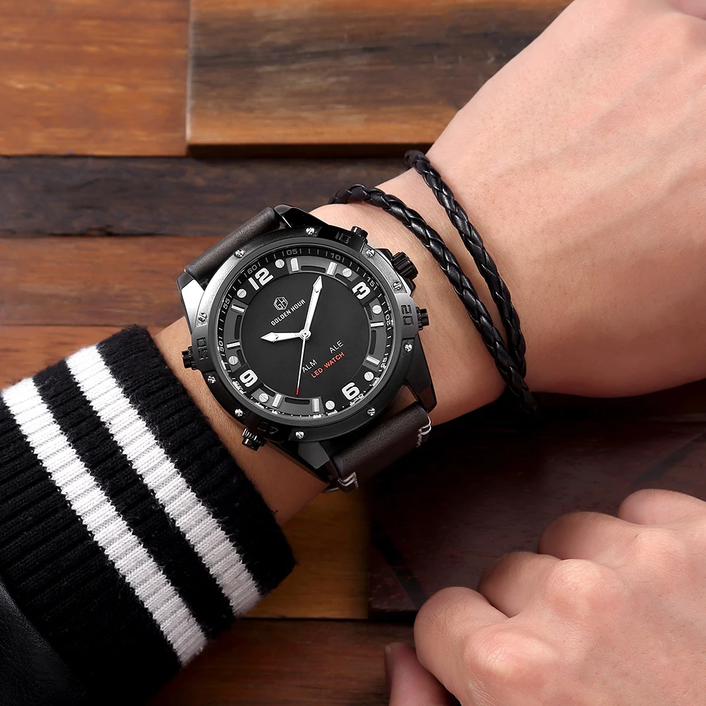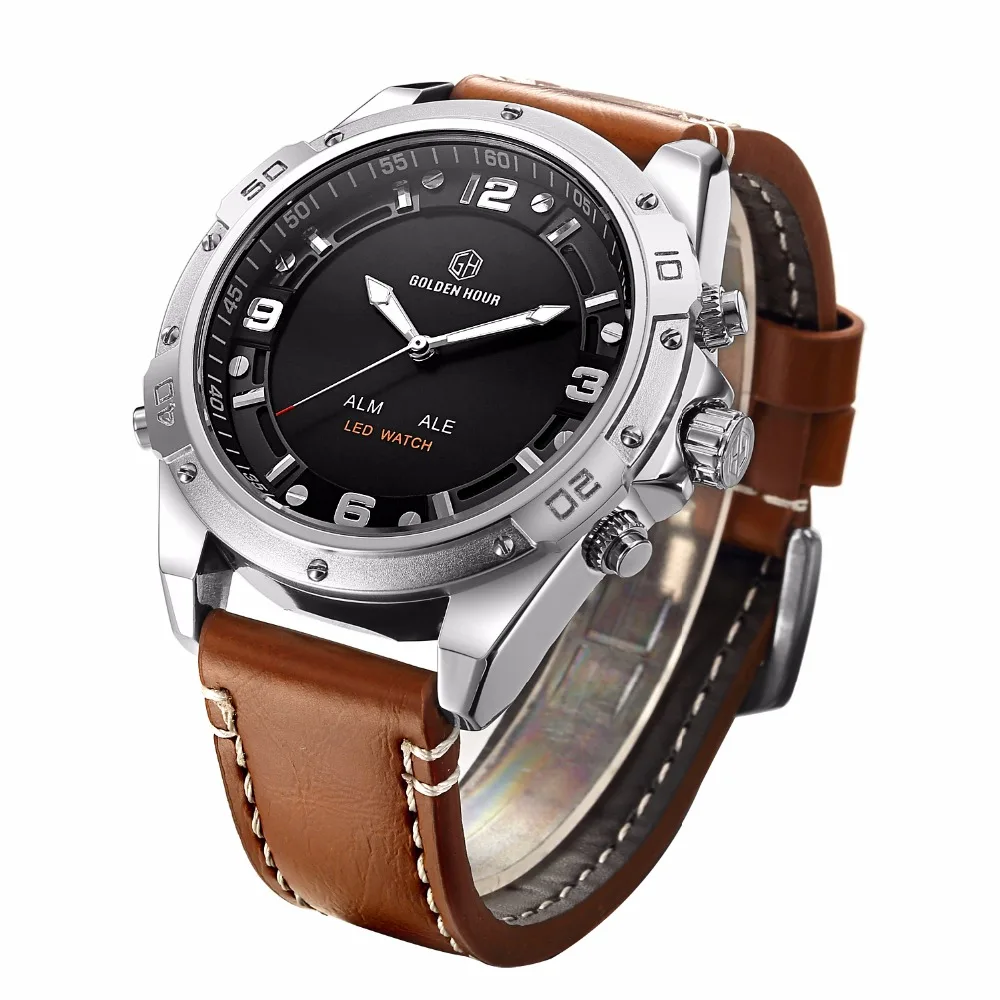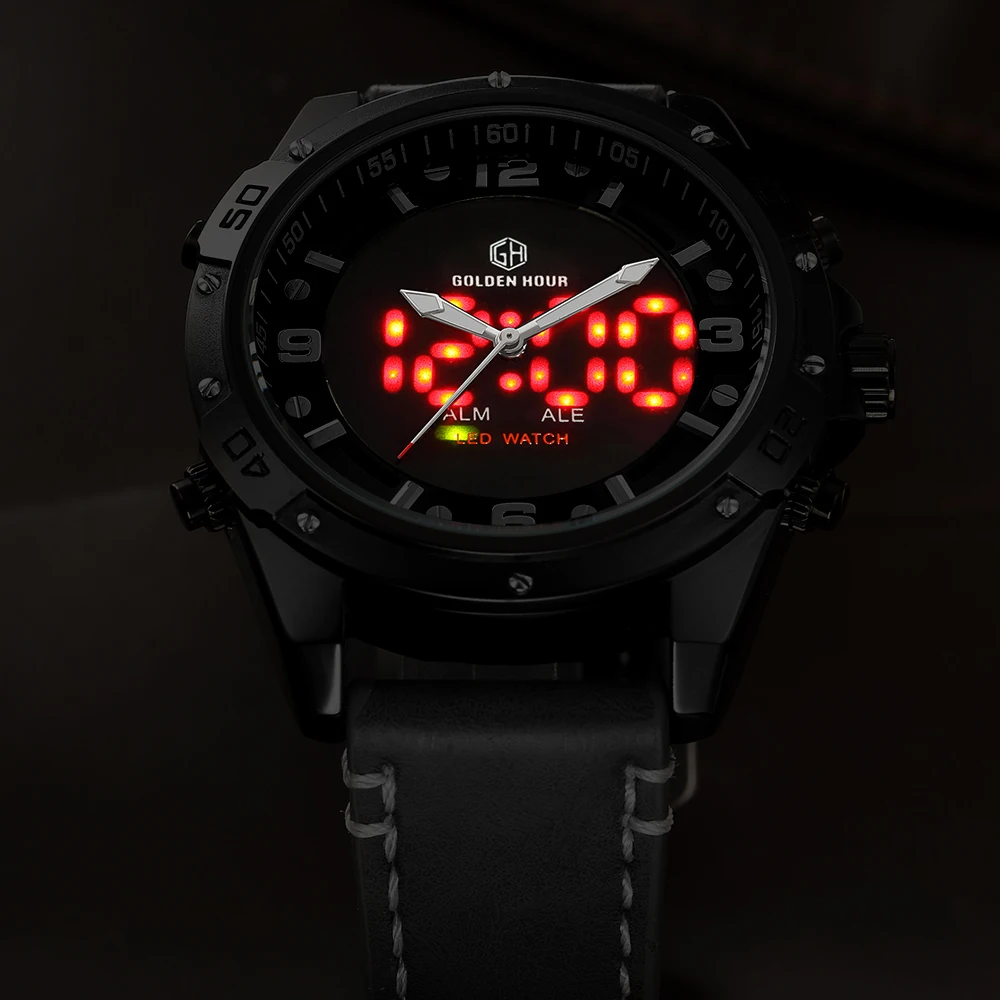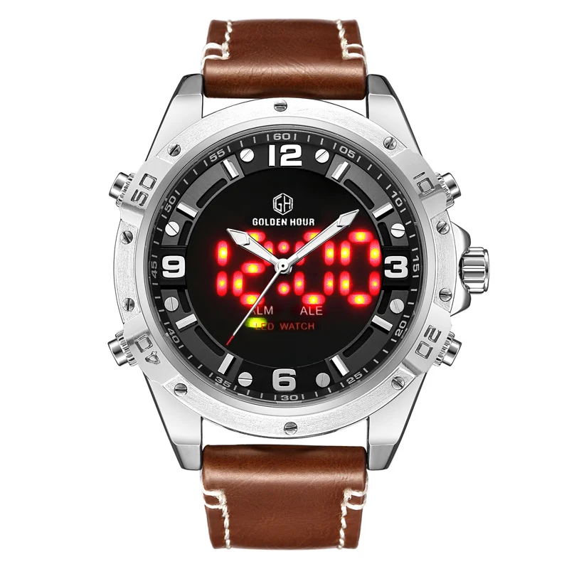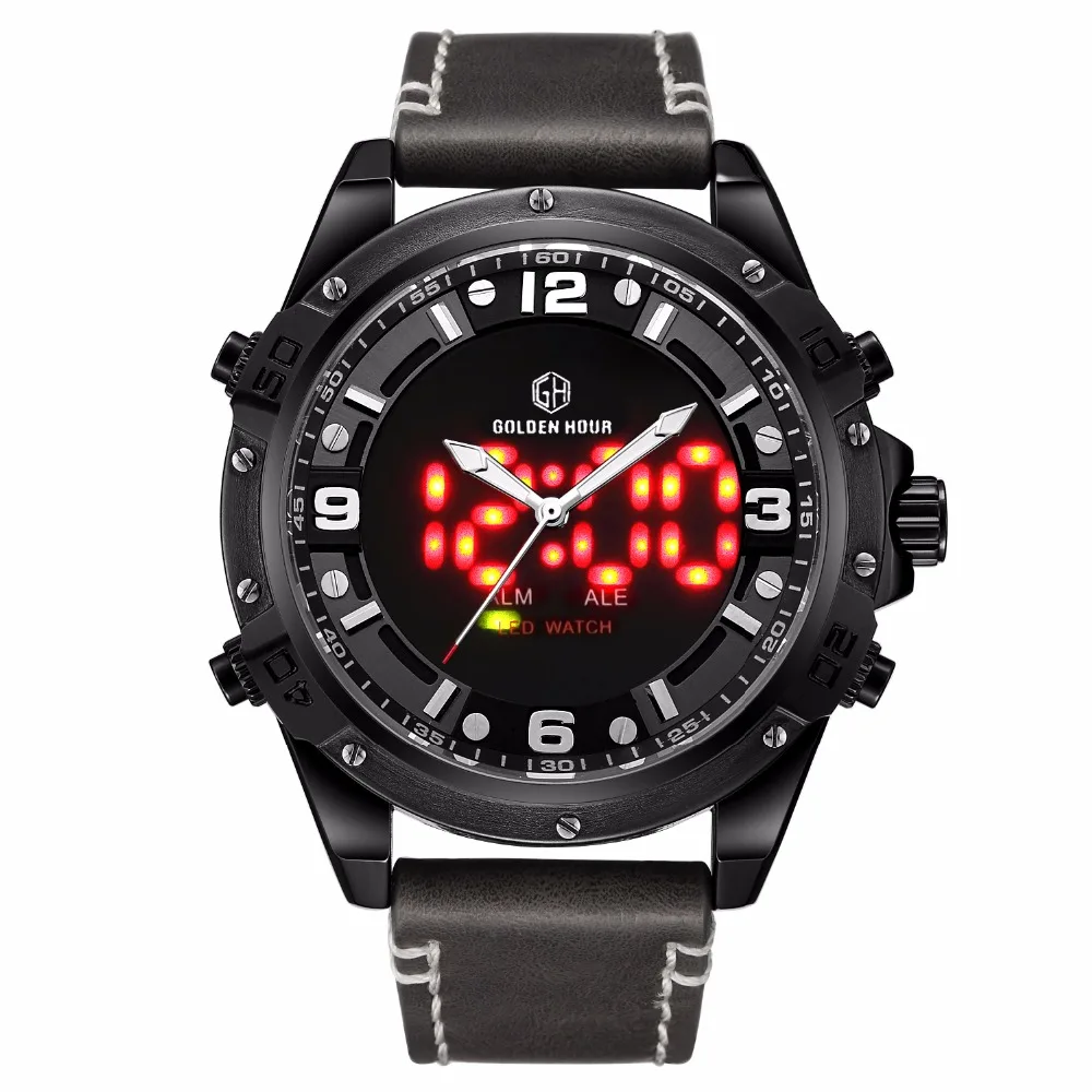 Feature:Complete Calendar,Shock Resistant,Luminous Hands,Stop Watch,LED display,Auto Date,Week Display,Water Resistant,Back Light,Chronograph,Alarm