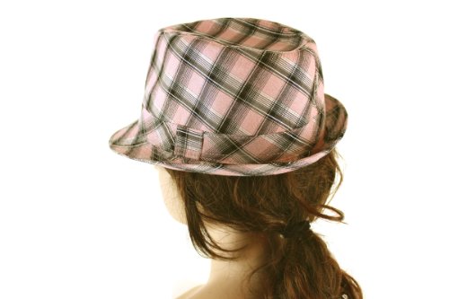 -. Title : Fashion Dimensions Glitter Plaid Fedora in Pink