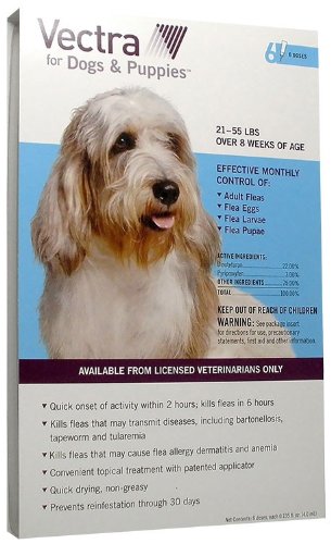 Studio : Summit VetPharm Publisher : Summit VetPharm Binding : Misc. Product Description Vectra for Dogs Puppies protects your dogs against parasites and pathogens. Vectra for Dogs Puppies uses a three pronged approach to keep your pet safe from disease carrying agents by utilizing Dinotefuran and Pyriproxyfen. The Dinotefuran is an insecticide that functions by causing continuous stimulation of the nervous system of insects upon first contact. This stimulation leads to tremors and quick deaths in insects as they land on your dog. Pyripoxyfen, an insect growth regulator, works to prevent development of fleas in their early stages. This keeps them as eggs, larvae and pupae until the other active ingredients functionally decimate them. Vectra for Dogs Puppies has been clinically shown to provide fastacting protection against fleas lasting up to one month. In addition to repelling mosquitoes, ticks, and sand flies, Vectra for Dogs Puppies repels and kills fleas quickly and effectively. In fact, it has been clinically shown to begin killing fleas within the first six hours of use. Vectra for Dogs Puppies remains effective after bathing and is easily applied via the Vectra applicator. Vectra 3D comes in 2 dosing sizes based on your dog's body weight. The product is available for in packs of 3doses and packs of 6doses. Vectra for Dogs Puppies comes in 4 dosing sizes based on your dog's body weight. The product is available for all weights in packs of 3doses and packs of 6doses. This package of Vectra for Dogs Puppies 2155 lbs is for dogs between 21 and 55 pounds and comes with 6 doses. Please read the application instructions thoroughly before applying Vectra to your pets. Key Features: Kills fleas of all life stages on contact before they can bite Repels fleas for full month per dose For dogs and puppies 21 to 55 lbs Contains: Dinotefuran and Pyriproxyfen Comes with patented applicator for easy application 0