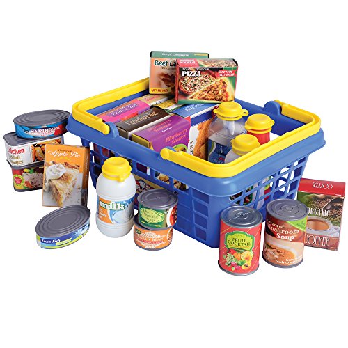 -. Feature : 38 pc. set / Includes 15 fruits and vegetables with cans, boxes and other groceries / Shopping basket is 11" x 8" / Ages 3 yrs. +
