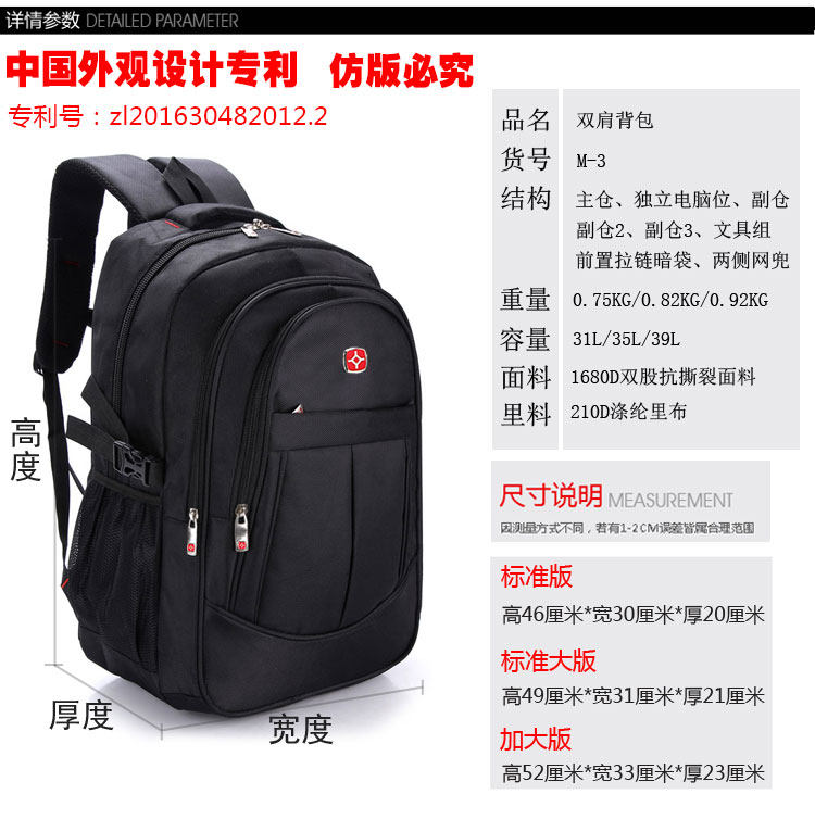 ミディアムブラック:高さ49 cm *幅30 cm *厚さ21 cm