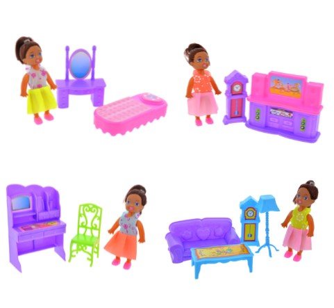 Product Warning WARNING: CHOKING HAZARD - Small Parts. Not for children under 3 yrs. Fun posable Barbie Like dolls are ready to move in! Mini dolls have plastic bodies with movable arms, legs, and heads and come in stylish summer outfits. Each also comes packaged with their own furniture and accessories. Perfect for hours of make-believe fun, these new friends are also great for care packagesFeature