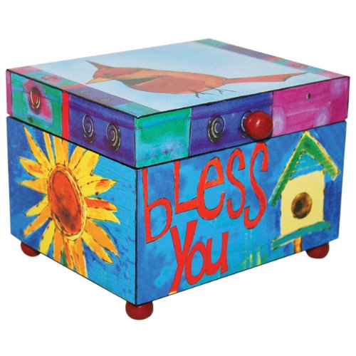 WESTLAND GIFTWARE STEPHANIE BURGESS MDF WOOD MUSIC BOX, 5 BY 4 BY 3.5-INCH, BLESS YOU
