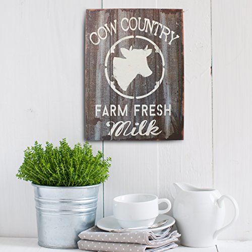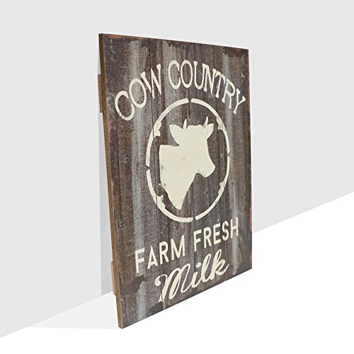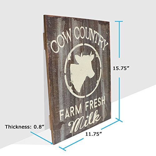 Barnyard Designs Cow Country Fresh Milk Retro Vintage Wood Plaque Bar Sign Country Home Decor 15.75" x 11.75"