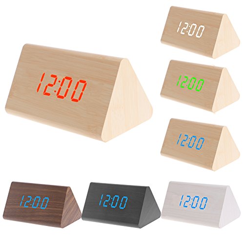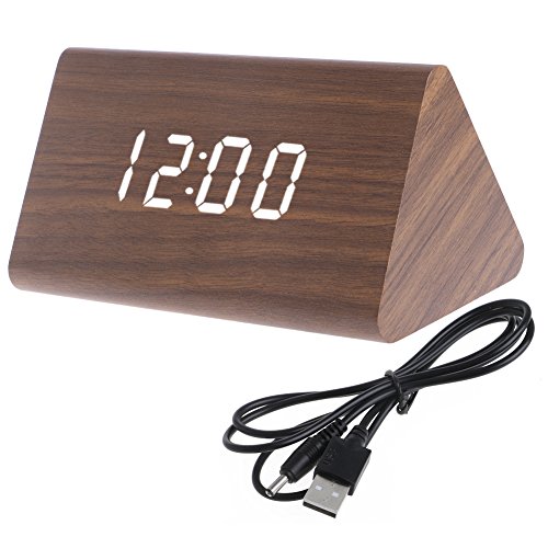 Feature: Contracted design style wooden alarm clock It also works in voice mode. Make some noise (clap your hands, rap on the table or pat the clock) nearby can wake it up or display always(two display style ,you can set) Time display: 12-hour or 24-hour mode C/F display of thermometer Alarm Clock with "beep" lasting for 1 minute Dual Power Supply: DC 5V-6V input or AAA battery,Pc USB port is available (Suggest to use USB cable) Specifications: Material: Imitation wood with surface PV Intelligent blue backlight, built-in sensor to turn on/off the backlight automatically Powered by 3 X AAA bateries (not included)/ DC 5V-6V input with PC USB port is available Size: 12*8.5*7.5cm/ 4.72"*3.35"*2.95"(LxWxH) Material: Wood Product Color: Bamboo/Brown/Black/White Light Color: Red/Green/Blue/White No Retail Packages Quantity: 1Set Note: Due to the difference between different monitors, the picture may not reflect the actual color of the item. Thank you! Package includes: 1Pc x Alarm Clock 1Pc x USB cable 0