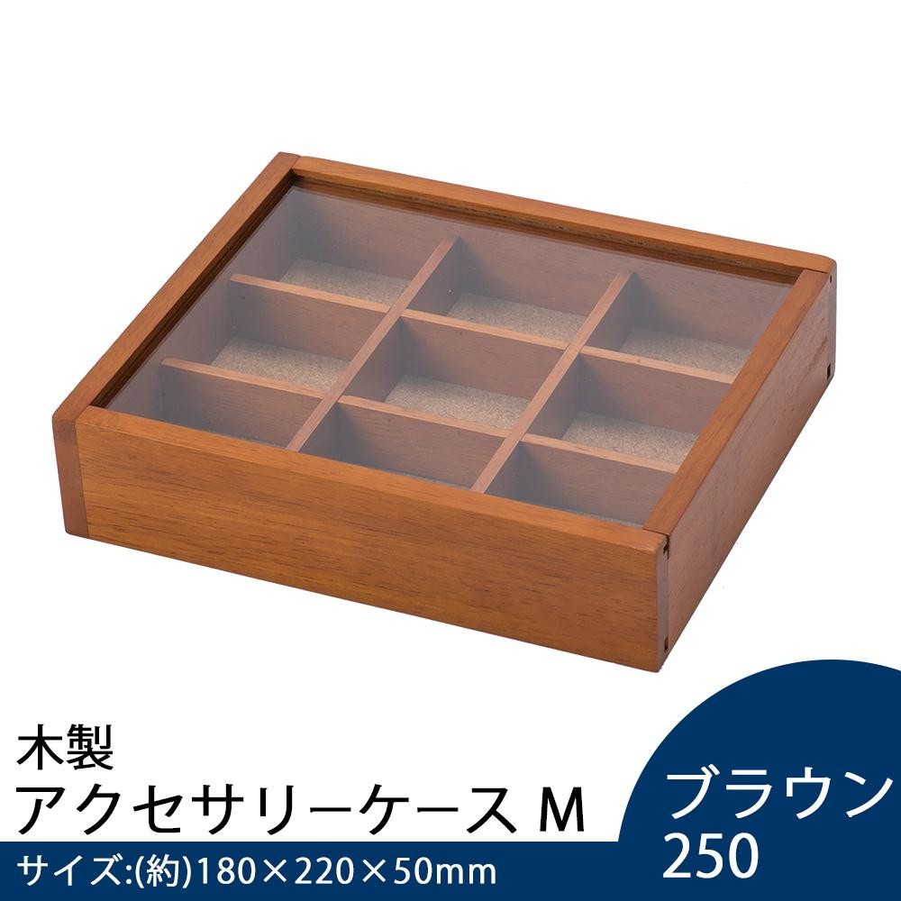 シンプルながらもぬくもりを感じるデザインが、どんなインテリアにも合わせやすい♪アクセサリーや小物をすっきり収納できます!! 製造国:ベトナム 素材・材質:天然木(ラバーウッド)、MDF、アクリル板 商品サイズ:(約)180×220×50mm ※サプライヤー直送品 ご注文後2~3営業日後の出荷となります【商品名】木製 アクセサリーケース M ブラウン 250 550-250