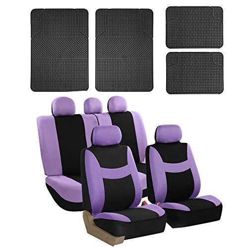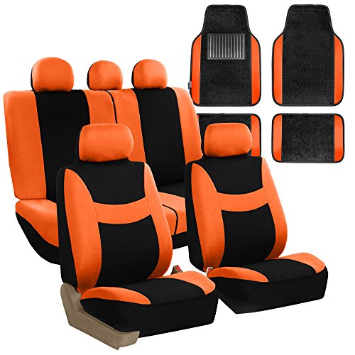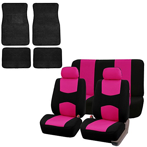 Ride in style with our boldest design yet. The eyecatching thick stripes of color are sure to catch attention. Comes in a variety of colors to match any interior. Our high quality fabric is backed by 3mm of foam padding to disperse heat and keep you cool and comfortable, even in the hottest temperatures. This full set includes seat and headrest covers two (2) bucket seats and one (1) rear split bench, and matching set of floormats.