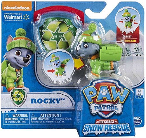 -. Title : Paw Patrol Snow Rescue – Rocky with Transforming Pup Pack and Badge