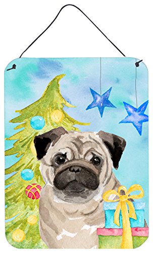 Caroline's Treasures Fawn Pug Christmas Metal Print, 16" x 12", Multicolor