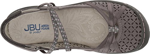 Studio : JBU by Jambu Publisher : JBU by Jambu Binding : Apparel Product Description Show off your unique style this spring in the pristine flat. The perforated upper allows for maximum breathability, while the solid and floral-printed elastic straps provide both fashion and function. As always, our standard memory foam foot bed will keep you comfortable all day, while the all-terra traction outsoles provide superior grip for any situation. 0