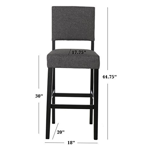 -. Brand : GDF Studio -. Color : Grey -. EAN : 0637162973370 -. Feature : Includes Two (2) Barstools / Dimensions: 18.10" D x 20.10" W x 44.70" H / Seat Width: 18.10"; Seat Depth: 17.80"; Seat Height: 30.00" / Front Foot Rail Height: 12.50" / The Bridgewell Barstools are perfect transitional pieces from your kitchen to your living room. The modern design of these barstools is the perfect touch for any counter or bar. -. Label : GDF Studio -. Manufacturer : GDF Studio -. ProductGroup : Furniture -. ProductTypeName : HOME_FURNITURE_AND_DECOR -. Publisher : GDF Studio -. Studio : GDF Studio -. Title : Bridgewell Grey Fabric Barstool (Set of 2) -. UPC : 637162973370