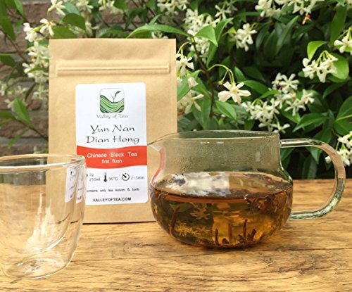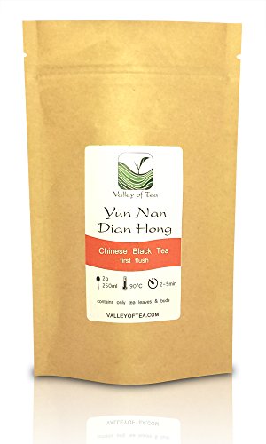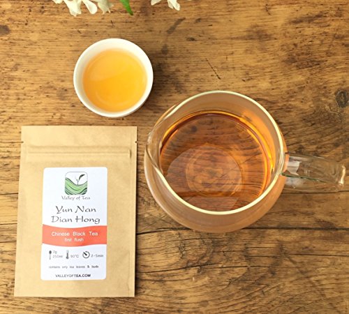 -. Binding : Grocery -. Brand : ValleyofTea -. Feature : Yunnan Black Tea is one of China's best loved black teas. And rightly so! This tea brews into a great tasting golden yellow tea with a full-bodied rich taste and aroma. A sip of this tea will reveal hints of cocoa, pepper and a faint touch of honey. / The full body and perfect balance of this tea is a result of the climate in which it grows - high on China's misty Yunnan mountains. / Our Yunnan tea is produced by a traditional artisan farm, which is located close to the Dianxi Longitudinal valley. / This loose leaf tea is easy to brew as it refuses to become bitter no matter how long you steep it, resulting in a perfectly balanced tea. / Experience the freshness of our tea - packaged on the farm and delivered straight to your door! -. IsAdultProduct : 0 -. Label : ValleyofTea -. Manufacturer : ValleyofTea -. PackageQuantity : 1 -. ProductGroup : Grocery -. ProductTypeName : GROCERY -. Publisher : ValleyofTea -. Studio : ValleyofTea -. Title : Yunnan Black Tea - Loose Leaf Breakfast Tea - Known As Golden Monkey Or Yu nan Dian Hong - (100g) 3.5 oz