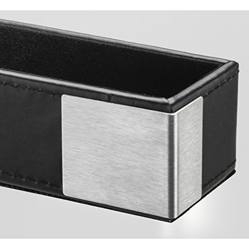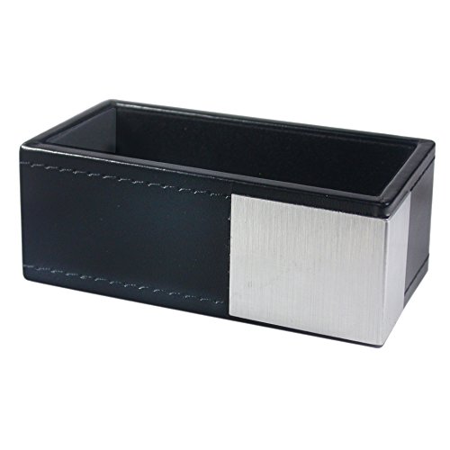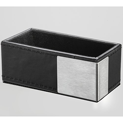 -. Title : Architect Line Leather-Like Business Card Holder, Black with Brushed Metal & Matching Black Stitching and Velvet-Like Lining