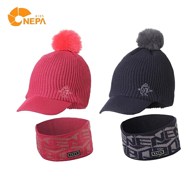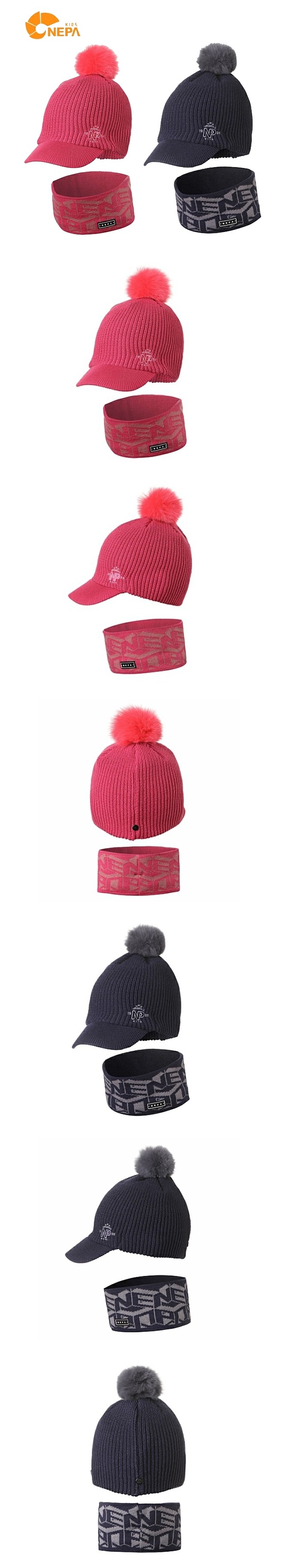 FUR소재의 방울이 달린 방한 소재의 니트캡 + 넥워머 세트