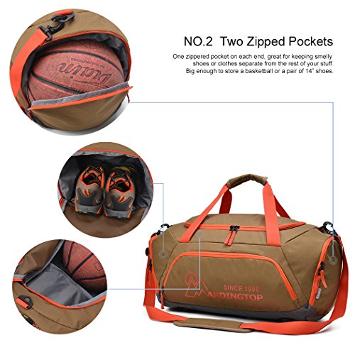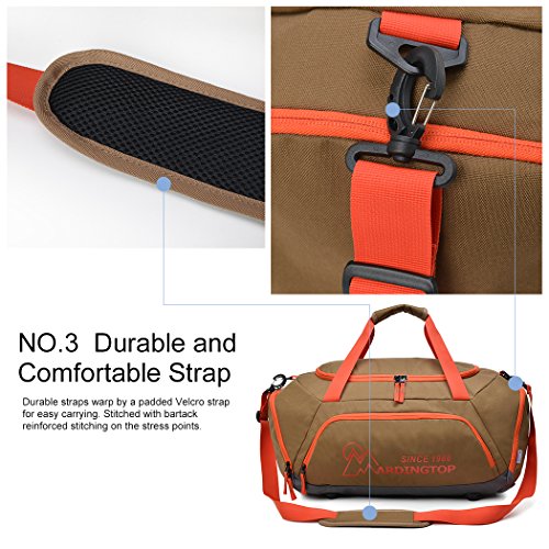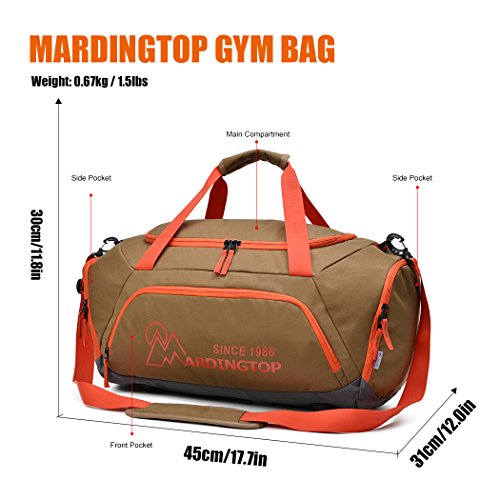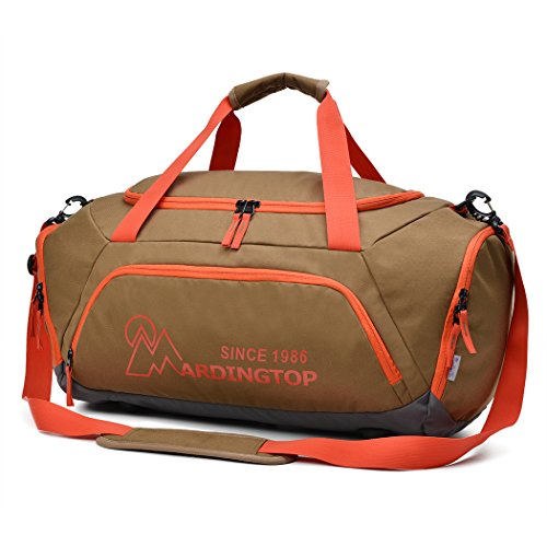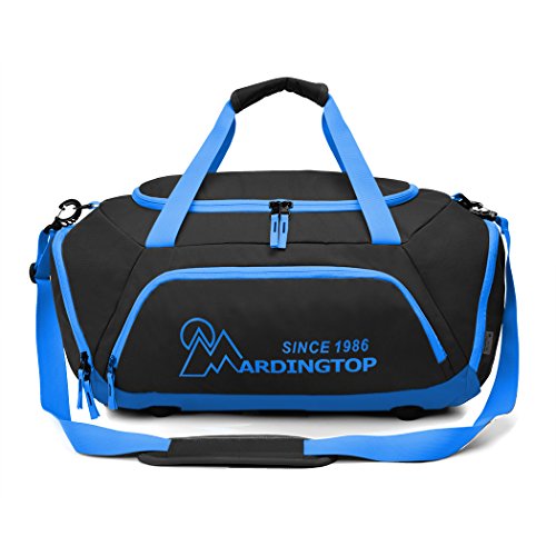 -. Brand : Mardingtop -. Feature : MATERIAL- Water-resistant 600D polyester do not allow water to easily penetrate, protect your stuff from a wet field or gym floor. SBS Zipper, open and close smoothly. / SIDE POCKET- One zippered pocket on each end, great for keeping smelly shoes or clothes separate from the rest of your stuff.Big enough to store a basketball or a pair of 14" shoes. / DETACHABLE & DURABLE HOOKS- Adjustable and detachable straps, comes with a padded warp for extra comfort. Durable hooks on both side can easily attach or detach. / CARRY-ON BAG- It can meet most major Airline cabin restrictions. / 90 DAYS LIMITED WARRANTY- If you don't like this Duffel Bag, it's available to return. -. IsAutographed : 0 -. IsMemorabilia : 0 -. Label : Good Outdoor -. Manufacturer : Good Outdoor -. MPN : DSM5906 -. PartNumber : DSM5906 -. ProductGroup : Sports -. ProductTypeName : OUTDOOR_RECREATION_PRODUCT -. Publisher : Good Outdoor -. Studio : Good Outdoor -. Title : Mardingtop Travel Duffel Bag/Gym Bag/Sports Duffels for Sports Traveling Gym Vacation