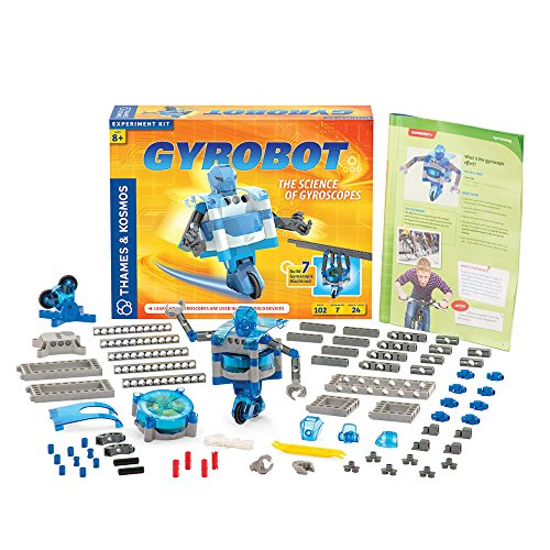 -. Feature : Build 7 models: gyrocompass, flight simulator, balance game, gyro horizon, personal transporter, tightrope walker / Includes gyroscope, 2 wheels with gears, front head piece, neck piece, 2 back head pieces, 2 wrist pieces, 4 hand pieces, 4 rivets, shoulder, upper body, 6 3-hole cross rods, 6 5-hole rods, 5 11-hole rods, 4 5-hole dual rods, 2 square frames, 2 short frames, 2 curved rods, 4 lengthwise connectors, 6 two-to-one converters, 4 joint pins, dual frame, 8 hinges, 2 30mm tubes, 30 anchor pins, anchor pin lever, 2mm string, paper cutout sheet / Detailed, full-color, 24-page manual included / Watch or clock required for some experiments / Requires 3 AAA batteries - not included
